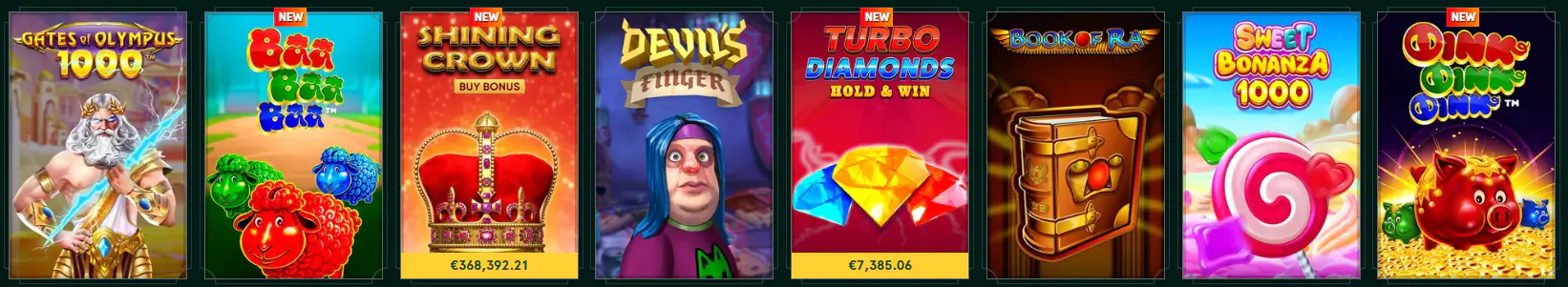Régulièrement, nous lançons de nouveaux jeux très modernes sur Casinia casino online. Cette fréquence et qualité de jeu sont dues à notre collaboration avec plusieurs logiciels de renom comme par exemple NetEnt, Evolution, Pragmatic, etc. Ces nouveaux jeux concernent toutes nos catégories de jeux de Casinia Casino online: machines à sous, jeux de table, live casino, loteries en ligne et jeux instantanés. Actuellement, nos nouveaux jeux Casinia Casino online sont les suivants: