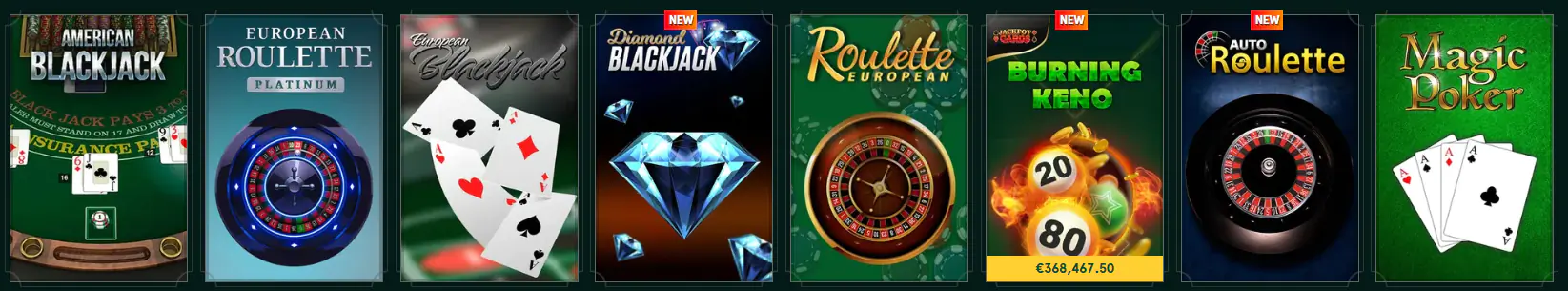 Les jeux de table représentent l’essence même du casino traditionnel, et ils se distinguent clairement des jeux en direct. Ici, vous ne jouez pas face à un croupier réel mais contre un logiciel certifié, conçu pour offrir une expérience fluide, stratégique et entièrement contrôlée par le joueur. Ce format plaît particulièrement à ceux qui apprécient la réflexion, le calcul des probabilités et la maîtrise du rythme de la partie. Roulette, Blackjack, Poker, Baccarat et autres variantes classiques vous permettent d’explorer différentes approches tout en profitant d’un environnement stable et sans pression. Les règles sont accessibles à tout moment, les mises ajustables selon votre style, et le jeu se déroule à votre cadence — idéal pour analyser, tester vos stratégies ou simplement savourer un moment de détente intelligente. Pour les amateurs de tradition et de précision, ces jeux constituent l’un des piliers incontournables de l’expérience casino.